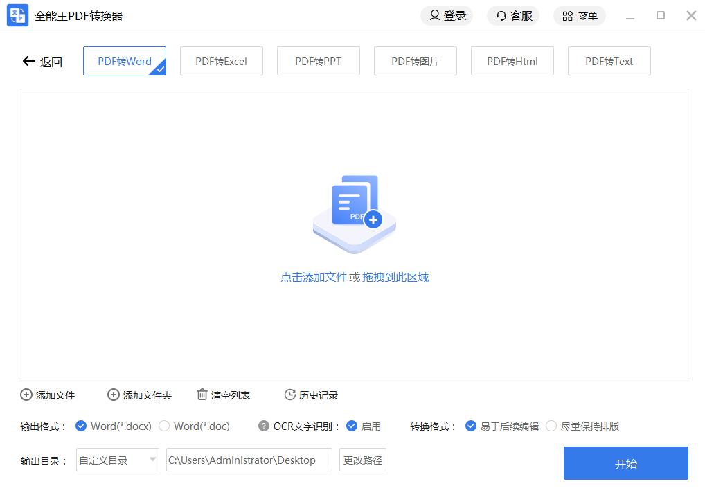 3.导入文档后,设置[保存格式]和[保存路径],点击[开始],稍后即可完成格式转换,转换后的Word文档可以在刚刚设置的保存位置找到。