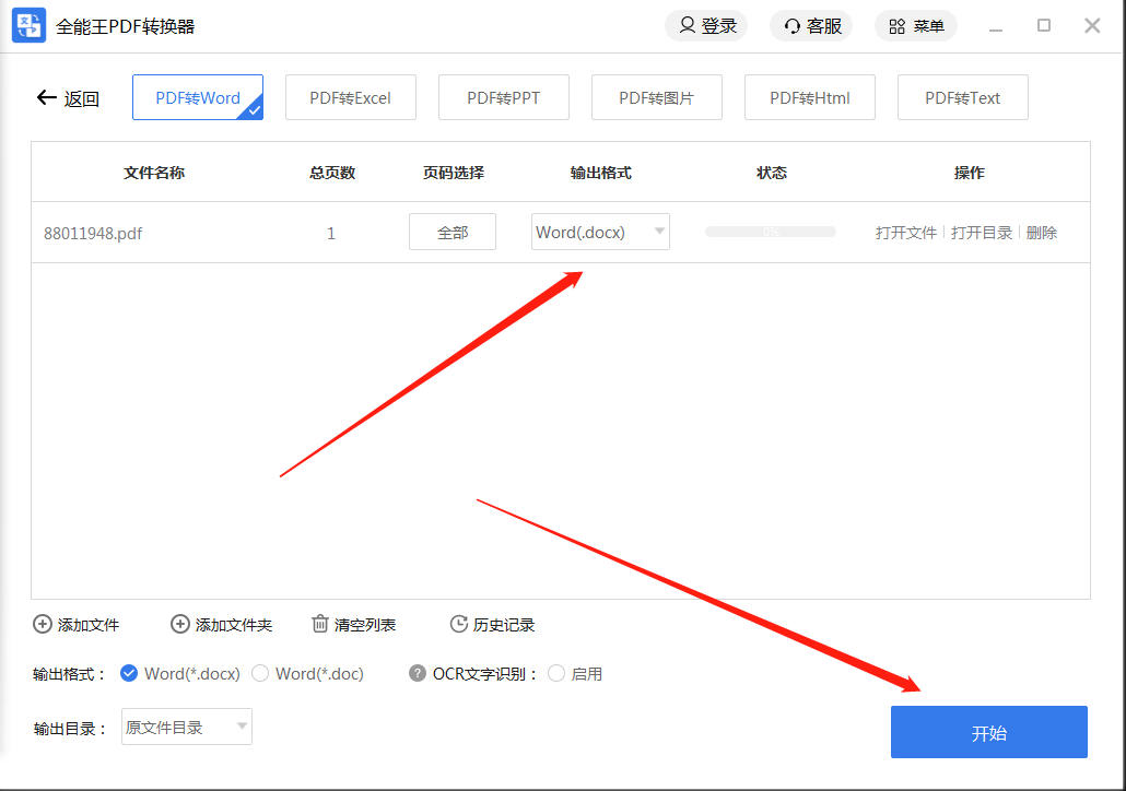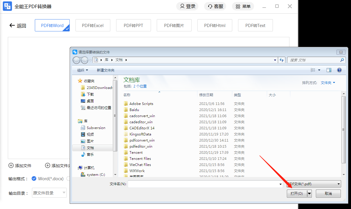点击添加文件,添加你想要转换成word的文件,或者是直接把你的文件拖拽进来全能王pdf转换器也是可以的。