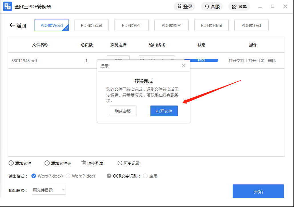 如上图所示,以上就是转换成功了,直接打开文件就能看转换完成后的word文件了,是不是感觉非常的简单?其实把pdf转wrod并不困难,选对pdf转换器就可以了。