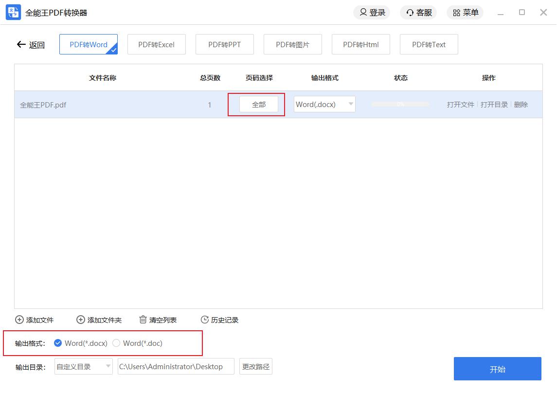 4、打开文件,通过PDF转换器进行文件之间的格式转换,设置输出格式。